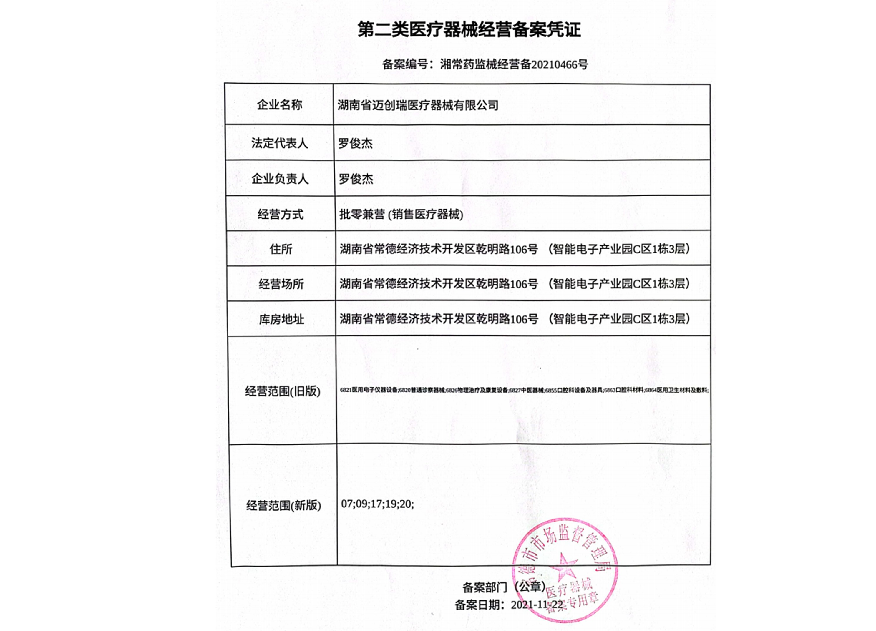 第二類醫(yī)療器械經(jīng)營(yíng)備案憑證
