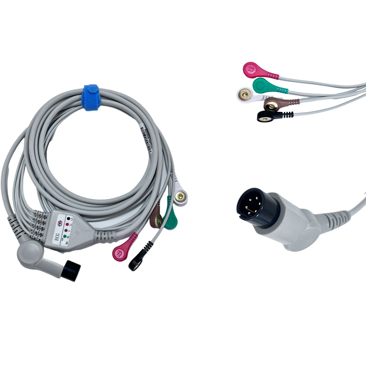 通用6P心電一體五導(dǎo)聯(lián)線夾式美標(彎頭)
